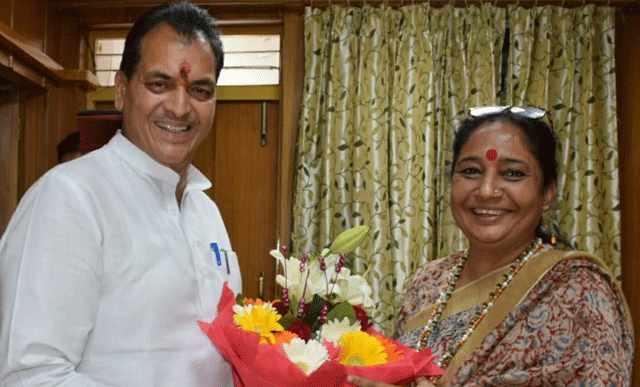 देहरादून । संसदीय कार्य व वित्त मंत्री प्रेमचंद अग्रवाल ने आज उत्तराखंड विधानसभा अध्यक्ष रितु खंडूरी भूषण से उनके यमुना कॉलोनी स्थित शासकीय आवास पर शिष्टाचार भेंट की। इस दौरान आगामी बजट सत्र को लेकर दोनों नेताओं के बीच चर्चा वार्ता हुई। इस मुलाकात के दौरान उत्तराखंड राज्य की पंचम विधानसभा के बजट सत्र एवं उसकी तैयारियों को लेकर विधानसभा अध्यक्ष एवं संसदीय कार्य मंत्री के बीच विस्तार से चर्चा वार्ता हुई। वहीं प्रदेश के विकास से संबंधित विषयों पर भी बातचीत हुईद्य इस दौरान विधानसभा अध्यक्ष ने शहरी विकास मंत्री से अपने विधानसभा क्षेत्र कोटद्वार से संबंधित विभिन्न समस्याओं को लेकर भी चर्चा की उन्होंने नगर निगम कोटद्वार को स्वच्छ एवं सुविधाओं से युक्त शहर बनाए जाने के लिए कई भविष्य की योजनाओं को लेकर वार्ता की।