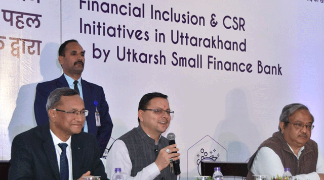 देहरादून, । मुख्यमंत्री पुष्कर सिंह धामी ने शनिवार को मुख्यमंत्री कैम्प कार्यालय स्थित मुख्य सेवक सदन में उत्कर्ष स्मॉल फाइनेंस बैंक द्वारा उत्तराखण्ड में वित्तीय समावेशन तथा सीएसआर के तहत की जा रही पहल कार्यक्रम के तहत चम्पावत पुलिस को 10 मोटर साइकिल को हरी झंडी दिखाकर रवाना की। मुख्यमंत्री ने बैंक की चम्पावत शाखा का वर्चुअली लोकार्पण करने के साथ ही विभिन्न स्वयं सहायता समूहों को संयुक्त आजीविका ऋण के चेक भी वितरित किये। मुख्यमंत्री पुष्कर सिंह धामी ने अपने संबोधन में कहा कि उत्तराखंड में पब्लिक प्राइवेट फाइनेंस को लेकर यह एक नई शुरुआत है। मुख्यमंत्री ने कहा कि प्रधानमंत्री नरेंद्र मोदी के आत्मनिर्भर भारत का मंत्र तभी सार्थक हो सकता है जब समाज के अंतिम छोर पर खड़े व्यक्ति तक शासन-प्रशासन बैंक स्वास्थ्य शिक्षा के सुविधा हो। जब उनतक यह सुविधा पहुँचेगी तभी देश के नागरिक आत्मनिर्भर बनेंगे। मुख्यमंत्री ने कहा कि हम सबको पंडित दीनदयाल उपाध्याय के अंत्योदय के सिद्धांत को अपनाने की जरूरत है। उन्होंने कहा कि प्रदेश में वित्तीय संसाधन और उनके लिए किए जाने वाले प्रयास उत्साहजनक हैं, उन्होंने कहा कि समाज में कई ऐसे लोग भी हैं जो बुनियादी स्तर पर काम कर रहे हैं।
