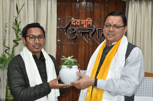 देहरादून, । मुख्यमंत्री पुष्कर सिंह धामी से शनिवार को मुख्यमंत्री आवास स्थित मुख्यमंत्री कैम्प कार्यालय में लद्दाख के सांसद जामयांग त्सेरिंग नामग्याल ने भेंट की। उन्होंने विभिन्न समसामयिक विषयों पर मुख्यमंत्री से चर्चा की।?