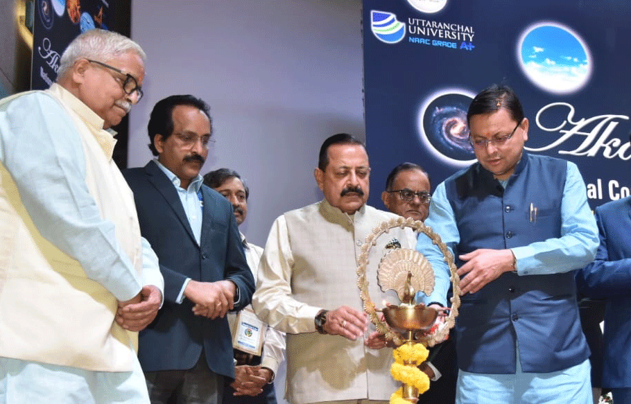 देहरादून, । मुख्यमंत्री पुष्कर सिंह धामी ने शनिवार को उत्तरांचल यूनिवर्सिटी प्रेमनगर, देहरादून में विज्ञान भारती उत्तराखण्ड एवं प्रौद्योगिकी विभाग, भारत सरकार द्वारा आयोजित नेशनल कॉफ्रेंस एण्ड एग्जिबीसन ऑन आकाश तत्व व आकाश फार लाइफ में प्रतिभाग किया। इस अवसर पर नेशनल कॉफ्रेंस एण्ड एग्जिबीसन ऑन आकाश तत्व व आकाश फार लाइफ से संबंधित एटलस एवं सार संग्रह का विमोचन भी किया गया। मुख्यमंत्री ने भारतीय अंतरिक्ष अनुसंधान संगठन (इसरो) और विज्ञान व प्रौद्योगिकी मंत्रालय के सहयोग से आयोजित आकाश तत्व सम्मेलन में देश भर से आए विषय विशेषज्ञों का उत्तराखंड में स्वागत करते हुए कहा कि उत्तराखंड की पावन धरा पर आयोजित यह चिंतन कार्यक्रम निश्चित रूप से पंच महाभूतों में प्रधान आकाश तत्व के नवीन आयामों की विवेचना करने में सफल होगा। पूर्व प्रधानमंत्री भारत रत्न स्व. अटल बिहारी वाजपेयी ने जय जवान, जय किसान के साथ जय विज्ञान का नारा दिया था। उन्होंने कहा कि इस अभियान को प्रधानमंत्री नरेन्द्र मोदी ने इसके साथ जय अनुसंधान जोड़कर इसे पूर्णता प्रदान की है। जय विज्ञान और जय अनुसंधान ये दो शब्द आज के विश्व में विज्ञान और अनुसंधान इन दोनों की महत्ता स्पष्ट करते हैं। आज का नया भारत विज्ञान के क्षेत्र में महाशक्ति के रूप में स्थापित हो रहा है। मुख्यमंत्री ने कहा कि प्रधानमंत्री मोदी ने पुरातन व आधुनिक विज्ञान दोनों की सहभागिता सुनिश्चित करते हुए सीएसआर अर्थात कॉर्पाेरेट सोशल रेस्पांसिबिलिटी की तर्ज पर एसएसआर अर्थात साइंटिफिक सोशल रेस्पांसिबिलिटी के विचार को अपनाने की वैज्ञानिकों से अपील की है। इस प्रकार के सम्मेलन वैज्ञानिक समुदाय के क्रिएटिव माइंडस को एक मंच पर लाकर एक भारत-श्रेष्ठ भारत की संकल्पना को सार्थक करने का मजबूत प्रयास है। उन्होंने कहा कि मानव जीवन के लिए पांच तत्वों आकाश, वायु, जल, पृथ्वी और अग्नि का होना अत्यंत महत्वपूर्ण है। इन पंच तत्वों के संरक्षण व संवर्धन की हमारी प्राचीन परंपरा को आगे बढ़ाने के लिए इस सम्मेलन में विचार-विमर्श हो रहा है, जो निश्चित रूप से सार्थक सिद्ध होगा।