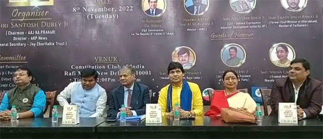 नई दिल्ली । दिल्ली के कांस्टीट्यूशन क्लब आफ इंडिया में राष्ट्रीय गौरव सम्मान अवार्ड-2022 कार्यक्रम का भव्य आयोजन ‘आज का प्रहरी’ हिंदी दैनिक और ‘जय चैरिटेबल ट्रस्ट’ द्वारा किया गया। इस कार्यक्रम के मुख्य-प्रायोजक एलआईसी ,सह-प्रायोजक यमुना एक्सप्रेस-वे,इफको और ओजसविंस क्यूरूट हैं। जिनके विशेष सहयोग से इस कार्यक्रम का आयोजन किया गया। इस कार्यक्रम के मुख्य अतिथि केंद्रीय मंत्री पशुपति कुमार पारस जो आधिकारिक कारणवश नहीं आ सके, उन्होंने अवार्ड पाने वाले सभी अवॉर्डीयों को शुभकामनाएं दी । विशिष्ट अतिथि उत्तराखंड के पूर्व मुख्यमंत्री तीरथ सिंह रावत, पूर्व जस्टिस एम.एम कुमार सदस्य एनएचआरसी, डॉ. रोजर गोपाल हाई कमिश्नर त्रिनिदाद एंड टोबैगो कार्यक्रम में मौजूद रहे। कार्यक्रम में देश के अलग-अलग क्षेत्रों में बेहतर कार्य करने वाले प्रतिभाशाली लोगों को सम्मानित किया गया। कार्यक्रम के बारे में बताते हुए एलआईसी के प्रबंध निदेशक राजकुमार ने कहा, ऐसे कार्यक्रमों से देश में अच्छा करने वालों को नई ऊर्जा मिलती है। एलआईसी उनके हर कदम पर साथ खड़ी है। उत्तराखंड के पूर्व मुख्यमंत्री तीरथ सिंह रावत ने कहा, अवार्ड सम्मान समारोह में हिंदी को आगे बढ़ाने की जो बात हुई वह सबसे अच्छी बात है। पूर्व जस्टिस एमएम कुमार ने कहा,पूरा देश ऐसे ही खुशहाल रहे और लोग आगे बढ़ते रहें। यमुना एक्सप्रेस-वे के सीईओ अरुण वीर सिंह ने सभी अवॉर्डीयों को बधाई दी। उत्तर प्रदेश के रेवेन्यू सेक्रेटरी राधेश्याम मिश्रा ने कार्यक्रम की सराहना की। उत्तर प्रदेश गोरखपुर के राज्य सभा सांसद जयप्रकाश निषाद कार्यक्रम में मौजूद रहे,उन्होंने सभी अवॉर्डी को शुभकामनाएं दी। राष्ट्रीय गौरव सम्मान अवार्ड-2022 कार्यक्रम के सफल आयोजन के बारे में बताते हुए आज का प्रहरी हिंदी दैनिक व मासिक पत्रिका के संपादक और ‘जय चैरिटेबल ट्रस्ट’ के संरक्षक संतोष दुबे ने कहा, हम कार्यक्रम के माध्यम से हिंदी भाषा को सर्वभाषा बनाने के लिए प्रयासरत हैं और सभी अवॉर्डी को शुभकामनाएं देते हैं। आज का प्रहरी चीफ एडवाइजर डॉ.योगेश दुबे ने कहा, समय-समय पर अच्छा करने वाले लोगों को सम्मानित किया जाना चाहिए। कार्यक्रम के सुनियोजित संचालन को लेकर प्रहरी की जनसंपर्क अधिकारी वैष्णवी परमार ने कहा,हमने सभी अतिथियों का स्वागत किया और प्रतिभाशाली लोगों को सम्मानित किया । यह हमारा एक प्रयास है,जिसमें देश भर के गौरव रत्नों को चयनित कर उन्हें सम्मानित व प्रोत्साहित किया जाता है।