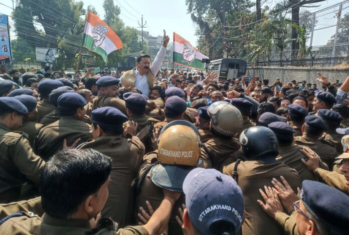 देहरादून, । बेरोजगार युवाओं पर लाठीचार्ज और भर्ती परीक्षाओं में धांधली की सीबीआई जांच की मांगों को लेकर कांग्रेस का प्रदर्शन आज सातवें दिन भी जारी रहा। कांग्रेस के विभिन्न विभागों, प्रकोष्ठों एंव अनुषागिक संगठनों द्वारा प्रदेश कांग्रेस अध्यक्ष के नेतृत्व में सचिवालय कूच कर गिरफ्तारियंा दी गयी।