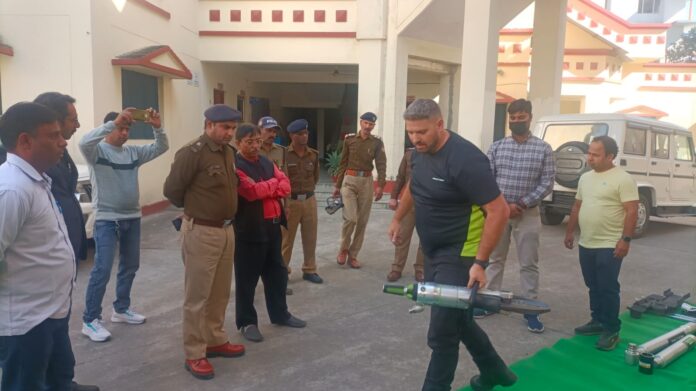 देहरादून, । आज दिनांक 23.02.2023 को उत्तराखण्ड अग्निशमन एवं आपात सेवा द्वारा फायर स्टेशन देहरादून पर अग्निशमन एवं राहत बचाव उपकरणों का डेमोन्स्ट्रेशन आयोजित किया गया। जिसमें मै0 बृजबासी इण्डिया प्रा0 लि0 द्वारा एडवांस हाईटैक रेस्क्यू उपकरणों यथा एयर लिफ्टिंग बैग, शोर्स एवं सपोर्ट, हाईड्रोलिक कटर, रैमजैक, काम्बीटूल आदि का डैमो दिया गया। किसी वाहन दुघर्टना, दैवीय आपदा जैसे कि भूकम्प आदि में उक्त उपकरणों का इस्तेमाल कर जानमाल की हानि को कम किया जा सकता है। डेमो के समय उप-निदेशक श्री संदीप कुमार राणा व प्रभारी अग्निशमन अधिकारी श्री सुनील दत्त तिवारी मय स्टाफ मौजूद रहे। उच्च अधिकारियों द्वारा चारधाम यात्रा, फायर सीजन के दृष्टिगत समस्त वाहन/मशीन / उपकरणों को सदैव कार्यशील दशा में रखने हेतु निर्देशित किया गया। डैमो सकुशल सम्पन्न हुआ।