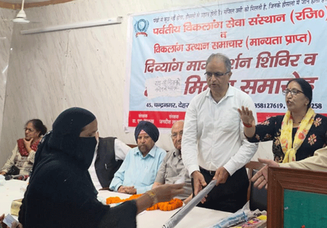 देहरादून,। पर्वतीय विकलांग सेवा संस्थान ने दिव्यांग मार्गदर्शन शिविर में दिव्यांगों एवं जरुरतमंदों को 100 छतरियां एवं 2 वॉकर वितरित किये। कार्यक्रम का आयोजन एक इन्दर रोड पर किया गया कार्यक्रम के मुख्यातिथि समाजसेवी डॉ. एस फारुख एवं अध्यक्षता समाजसेवी के जी बहल ने की, जबकि विशिष्ठ अतिथि समाजसेवी जगदीश लाल पाहवा एवं डी आई एस के चेयरमैन स. देविंदर सिंह मान रहे। मुख्यातिथि डॉ. एस फारुख ने संस्था द्वारा किये जा रहे समाजिक कार्यों की भूरि भूरि प्रशंसा की एवं अपना हर प्रकार का सहयोग देने का आश्वासन दिया स विशिष्ठ अतिथि जगदीश लाल पाहवा एवं डी एस मान ने दिव्यांगों एवं जरुरतमंदों के हित में संस्था द्वारा किये जा रहे कार्यों की सराहना की। मंच का संचालन संस्था के प्रदेश अध्यक्ष गुलशन बाहरी ने कहा कि संस्था निस्वार्थ भाव से दिव्यांगों एवं जरूरतमंदों को पिछले करीब 35 वर्षो से सहयोग करती आ रही है, जिससे सैकड़ों दिव्यांग लाभान्वित हो चुके हैँ स आये हुए सभी अतिथियों का कार्यक्रम अध्यक्ष के जी बहल ने धन्यवाद किया। इस अवसर पर गुरुद्वारा श्री गुरु सिंह सभा के महासचिव स. गुलजार सिंह, वेद प्रकाश दुग्गल, जे. डाडोना,गुलिस्ता खानम, डॉ. मयंक, वकील तारा, रोशनी देवी, गीता, बबीता, अकरम सलमानी, सुन्दर थापा, आशा टम्टा एवं आर के बक्शी आदि मुख्य रूप से उपस्थित रहे।