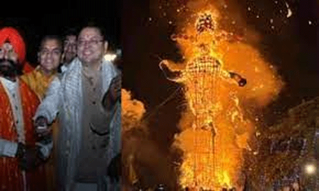 मुख्यमंत्री पुष्कर सिंह धामी ने रिमोट का बटन दबाकर रावण के पुतले का दहन किया। इसमें इको फ्रेंडली पटाखों का प्रयोग किया गया था। जिससे ग्राउंड में लगी कीमती घास को भी नुकसान न हो। सीएम धामी ने प्रदेशवासियों को विजयदशमी की बधाई एवं शुभकामनाएं दी हैं। मुख्यमंत्री ने कहा कि विजयदशमी का पर्व अधर्म पर धर्म, बुराई पर अच्छाई और असत्य पर सत्य की विजय का प्रतीक है।आज जरूरत इस बात की है कि हम अपने जीवन में अहंकार से मुक्त होकर सच्चाई के रास्ते पर चलें और प्रदेश व देश की सामाजिक समरसता के लिए मिलजुल कर कार्य करें। इस बार का रावण का पुतला बेहद खास बनाया गया था। इंदिरा नगर कॉलोनी ग्राउंड में 55 फीट ऊंचे रावण के पुतले को फूंका गया। शिवालिक इंटरनेशनल स्कूल पटेलनगर में 51 फीट ऊंचे रावण के पुतला जलाया जलाया गया। रावण की कीमत 20 से 25 लाख रुपये बताई जा रही है। यह पुतला रिमोट वाले दस गोलों से जला। इस बार रावण का वजह 50 कुंतल था। इसमें 30 कुंतल सरिया व लकड़ी लगाई गई। रावण को बनाने में पांच हजार मीटर कपड़ा लगाया गया था। ऊपर कागज की जगह सनील के कपड़े का प्रयोग किया गया।
