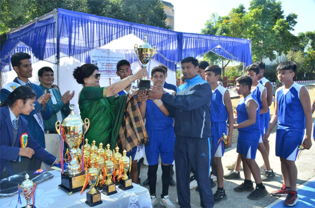 देहरादून । न्यू दून ब्लॉसम्स स्कूल, सहस्त्रधारा रोड, देहरादून में चल रहे स्वर्गीय श्री आर० आर० दीक्षित की स्मृति में द्वितीय अंडर १४ बास्केटबॉल टूर्नामेंट का आज समापन हो गया। आज हो रहे प्रथम सेमि फाइनल मुकाबले में दून ब्लॉसम्स स्कूल, डालनवाला और दून इंटरनेशनल स्कूल आपस में भीड़े, जिसमे ३४ अंकों के साथ दून ब्लॉसम्स स्कूल ने फाइनल में अपनी जगह बनाई उसी कड़ी में द्वितीय सेमि फाइनल में न्यू दून ब्लॉसम्स, सहस्त्रधरा रोड और समरवैली स्कूल के बीच कांटे की टक्कर हुई जिसमे समरवैली स्कूल ने २४ अंकों के साथ फ़ाइनल में अपनी जगह बनाई। इस बीच विशेष अतिथि श्री कैलाश नाथ शर्मा का स्वागत प्रधानाचार्य तथा विद्यालय की स्टूडेंट कौंसिल के पदाधिकारियों द्वारा किया गया। उसके पश्चात विशेष अतिथि श्री कैलाश नाथ शर्मा द्वारा फाइनल में पंहुची दोनों टीमों के कोच और खिलाडियों से परिचय प्राप्त किया तथा शुभकामनाये दी। फाइनल मैच दून ब्लॉसम्स स्कूल, डालनवाला और समरवैली स्कूल के बीच खेला गया जिसमे दून ब्लॉसम्स स्कूल, डालनवाला ने २७ अंकों के साथ बाजी मारी। मैच समापन पर विद्यालय के छात्र – छात्राओं द्वार समूह गान की प्रस्तुती दी गयी। विजयी टीम को ट्रॉफी विशेष अतिथि श्री कैलाश नाथ शर्मा द्वारा प्रदान की गयी तथा पुरस्कार वितरण विशेष सोसाइटी की अध्यक्ष श्रीमती मिनाक्षी दीक्षित द्वारा किया गया।और अंत में दून ब्लॉसम्स स्कूल, डालनवाला की प्रधानाचार्य श्रीमती कुसुम गुसाईं द्वारा धन्यवाद प्रस्ताव दिया गया जिसमे सोसाइटी की अध्यक्ष श्रीमती मिनाक्षी दीक्षित, विशेष अतिथि श्री कैलाश नाथ शर्मा तथा न्यू दून ब्लॉसम्स स्कूल की प्रधानाचार्य श्रीमती प्रतिभा शर्मा का विशेष धन्यवाद किया तथा साथ ही साथ टूर्नामेंट को सफल बनाने में विशेष सहयोगी रेफरी श्री बलविंदर सिंह, श्री हिमांशु श्री आयुष एवं श्री कैलाश तथा टीमों के कोच श्री मुकेश डंगवाल, श्री सुनील सिंह, कुमारी आस्था ठाकुर, कुमारी मीनू जैसवाल, श्री विवेक कुंवर, श्रीमती अनीता असवाल, श्री दीपक तथा श्री उत्तम सिंह और पत्रकार बंधुओं तथा विद्यालय के अधिकारी गण एवं समस्त कर्मचारियों का धन्यवाद किया ।