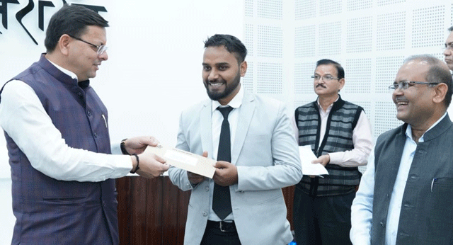 देहरादून। मुख्यमंत्री पुष्कर सिंह धामी ने रविवार को मुख्यमंत्री कैंप कार्यालय में राज्य सम्पत्ति विभाग के अन्तर्गत स्वागती पद पर 8 संस्तुत अभ्यर्थियो को नियुक्ति पत्र वितरित किए। इस अवसर पर मुख्यमंत्री ने सभी नव नियुक्त अभ्यर्थियो को बधाई देते हुए उनके उज्जवल भविष्य की कामना की। उन्होंने कहा आगामी समय में सभी अभ्यर्थी राज्य के विभिन्न अतिथि गृहों में अपनी सेवाएं देंगे। स्वागती द्वारा किए जाने वाले सरल एवं सौम्य व्यवहार से ही हम अतिथि देवो भवः के सिद्धांत को पूरा कर सकते हैं। मुख्यमंत्री ने कहा कि सभी नवनियुक्त अभ्यर्थी अपने कर्तव्य का पूर्ण मनोयोग एवं जिम्मेदारी से पालन करें। इस दौरान सचिव विनोद कुमार सुमन, अपर सचिव लक्ष्मण सिंह एवं अन्य लोग मौजूद रहे।