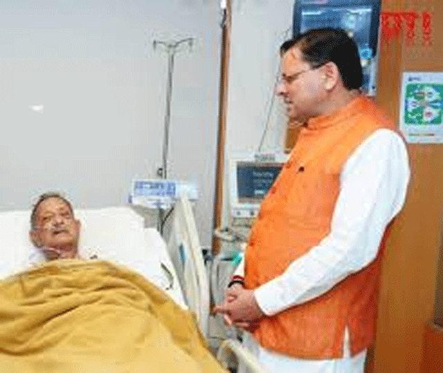 देहरादून, । मुख्यमंत्री पुष्कर सिंह धामी देहरादून स्थित मैक्स हॉस्पिटल पहुंचे, जहां उन्होंने उत्तराखंड के पूर्व मुख्यमंत्री एवं वरिष्ठ राजनेता भुवन चंद्र खंडूरी के स्वास्थ्य की जानकारी प्राप्त की। श्री खंडूरी वर्तमान में स्वास्थ्य संबंधी कारणों से अस्पताल में उपचाररत हैं। मुख्यमंत्री ने चिकित्सकों से श्री खंडूरी के स्वास्थ्य की स्थिति की जानकारी ली और उनके शीघ्र स्वस्थ होने की कामना की। इस अवसर पर उत्तराखंड विधानसभा की अध्यक्ष ऋतु खंडूरी भूषण भी उपस्थित रहीं। मुख्यमंत्री ने उनसे भी श्री खंडूरी के स्वास्थ्य एवं उपचार की जानकारी ली।
