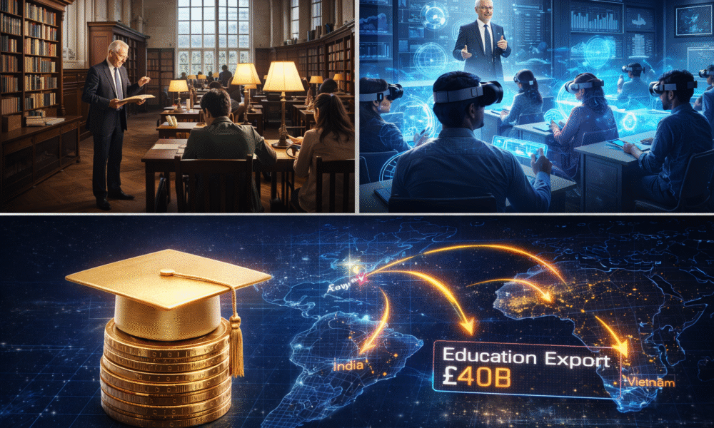 लंदन – ब्रिटिश सरकार ने मंगलवार को अपनी नई ‘अंतरराष्ट्रीय शिक्षा रणनीति (IES) 2026’ का अनावरण किया है। यह कदम पिछले एक दशक से अंतरराष्ट्रीय छात्रों को ब्रिटेन बुलाकर शिक्षा देने (ऑनशोर रिक्रूटमेंट) की निर्भरता से एक बड़े बदलाव का संकेत है। इस नए रोडमैप के जरिए ब्रिटेन अपने शिक्षा क्षेत्र को आर्थिक विकास के प्राथमिक इंजन के रूप में गति देना चाहता है। सरकार ने 2030 तक शिक्षा निर्यात को £40 बिलियन (लगभग ₹4.2 लाख करोड़) प्रति वर्ष तक पहुँचाने का साहसिक लक्ष्य रखा है।