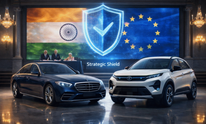 वैश्विक व्यापार की दिशा बदलने वाले एक ऐतिहासिक घटनाक्रम में, भारत और यूरोपीय संघ (EU) आज एक मुक्त व्यापार समझौते (FTA) को औपचारिक रूप देने जा रहे हैं। इस समझौते को वैश्विक व्यापार अस्थिरता के खिलाफ एक “रणनीतिक ढाल” के रूप में देखा जा रहा है। इसमें एक महत्वपूर्ण खंड शामिल है जो यूरोपीय वाहनों पर आयात शुल्क को 110% के भारी स्तर से घटाकर 40% कर देता है। हालांकि यह कदम फॉक्सवैगन (Volkswagen), बीएमडब्ल्यू (BMW) और मर्सिडीज-बेंज (Mercedes-Benz) जैसे दिग्गजों के लिए दुनिया के तीसरे सबसे बड़े ऑटो बाजार के दरवाजे खोलता है, लेकिन विशेषज्ञों का मानना है कि आगे की राह अभी भी चुनौतीपूर्ण है।