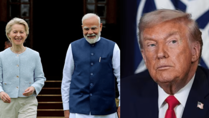 एक ऐतिहासिक मंगलवार को, जिसने वैश्विक वाणिज्य के परिदृश्य को नया आकार दिया, भारत और यूरोपीय संघ (EU) ने उस समझौते को अंतिम रूप दिया जिसे “सभी समझौतों की जननी” (mother of all deals) के रूप में सराहा जा रहा है। लगभग दो दशकों की छिटपुट बातचीत के बाद, यह समझौता दो अरब लोगों और वैश्विक सकल घरेलू उत्पाद (GDP) के 25% हिस्से को समाहित करने वाला एक मुक्त-व्यापार क्षेत्र बनाता है। हालांकि, प्रमुख अमेरिकी समाचार कक्षों के लिए, यह कहानी केवल आर्थिक आंकड़ों तक सीमित नहीं थी; यह संयुक्त राज्य अमेरिका की अनिश्चितता के विरुद्ध एक रणनीतिक “घेराबंदी” (hedging) के बारे में थी।