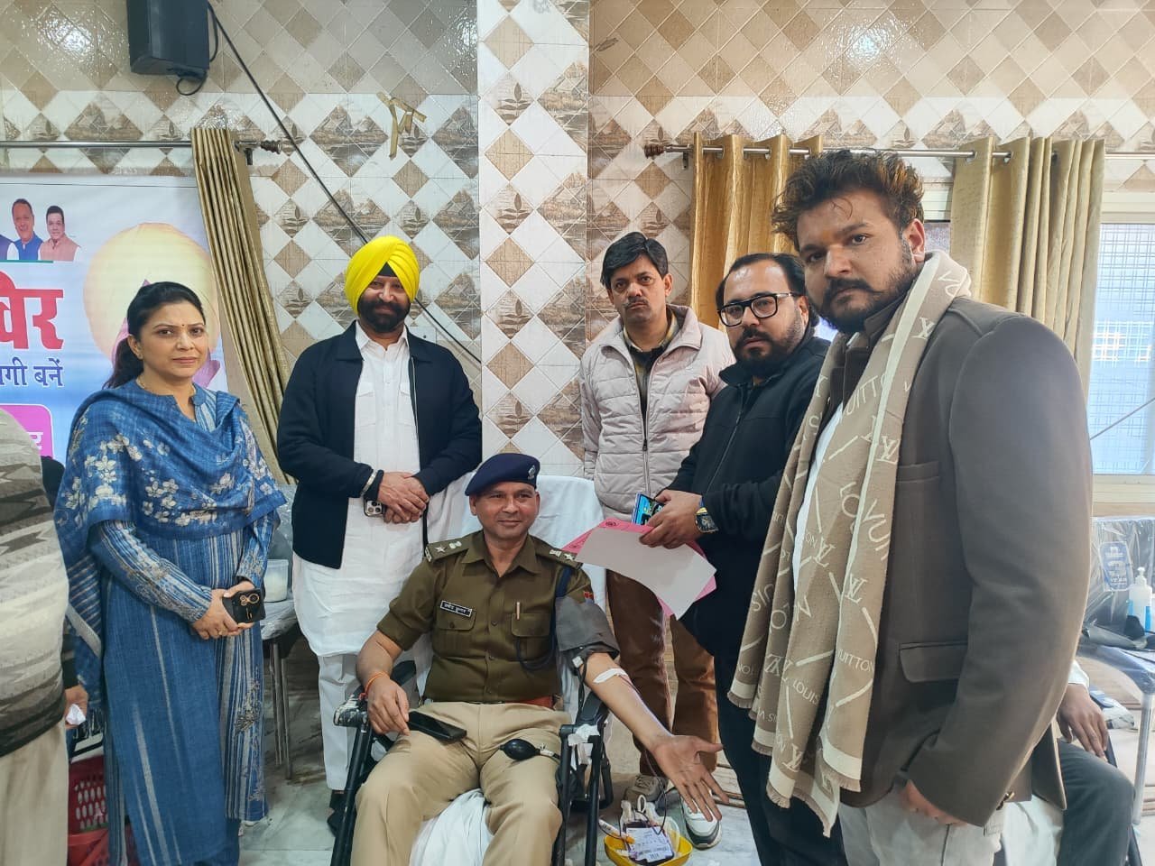 देहरादून-  विगत वर्षों की भांति इस वर्ष भी 34वां स्वैच्छिक रक्तदान शिविर पार्षद संतोख सिंह नागपाल के जन्मदिन के उपलक्ष्य में कालिका मंदिर मार्ग स्थित श्री गुरुद्वारा अमृत दरबार में आयोजित किया गया । संजीव विज (मीडिया प्रभारी, भाजपा) द्वारा बताया गया कि आयोजन में मुख्य रूप से राजपुर रोड विधानसभा विधायक खजान दास, देहरादून नगर निगम मेयर सौरभ थपलियाल, पुनीत मित्तल प्रदेश कोषाध्यक्ष, अनिल गोयल एवं महानगर जिला अध्यक्ष भारतीय जनता पार्टी, सिद्धार्थ उमेश अग्रवाल, अशोक वर्मा, हरीश डोरा, अर्चित डावर, सुनील मैसन व अंबेडकर नगर मंडल अध्यक्ष पंकज शर्मा, विशाल गुप्ता, वैभव अग्रवाल पार्षद, विजय कोहली, योगेश व्यास, हरजीत सिंह, सतीश साहनी, रमन अलग, चंदन दुआ, तरनदीप सिंह मनी, दीपक ग्रोवर आदि क्षेत्र के गण मान्य लोगों ने इस स्वैच्छिक रक्तदान शिविर में बढ़-चढ़कर भाग लिया। स्वैच्छिक रक्तदान शिविर में मुख्य रूप से गुरुद्वारा श्री गुरु अमृत दरबार के प्रबंधक कमेटी के समस्त सदस्यों में संजय कुकरेजा, दलजीत सिंह, भूषण साहनी, मनोज साहनी, सतीश साहनी, अनित ननकानी, , श्री महंत इन्दिरेश अस्पताल की ब्लड बैंक टीम के समन्वयक अमित चंद्रा के नेतृत्व में इस स्वैच्छिक रक्तदान शिविर का आयोजन किया गया जिसमें 230 (दो सौ तीस) यूनिट रक्त का संग्रह किया गया । संतोख नागपाल द्वारा सभी आए हुए अतिथियों का आभार प्रकट किया गया।