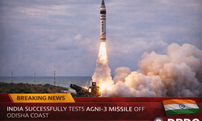 बैलिस्टिक मिसाइल अग्नि-3 का सफल परीक्षण किया
